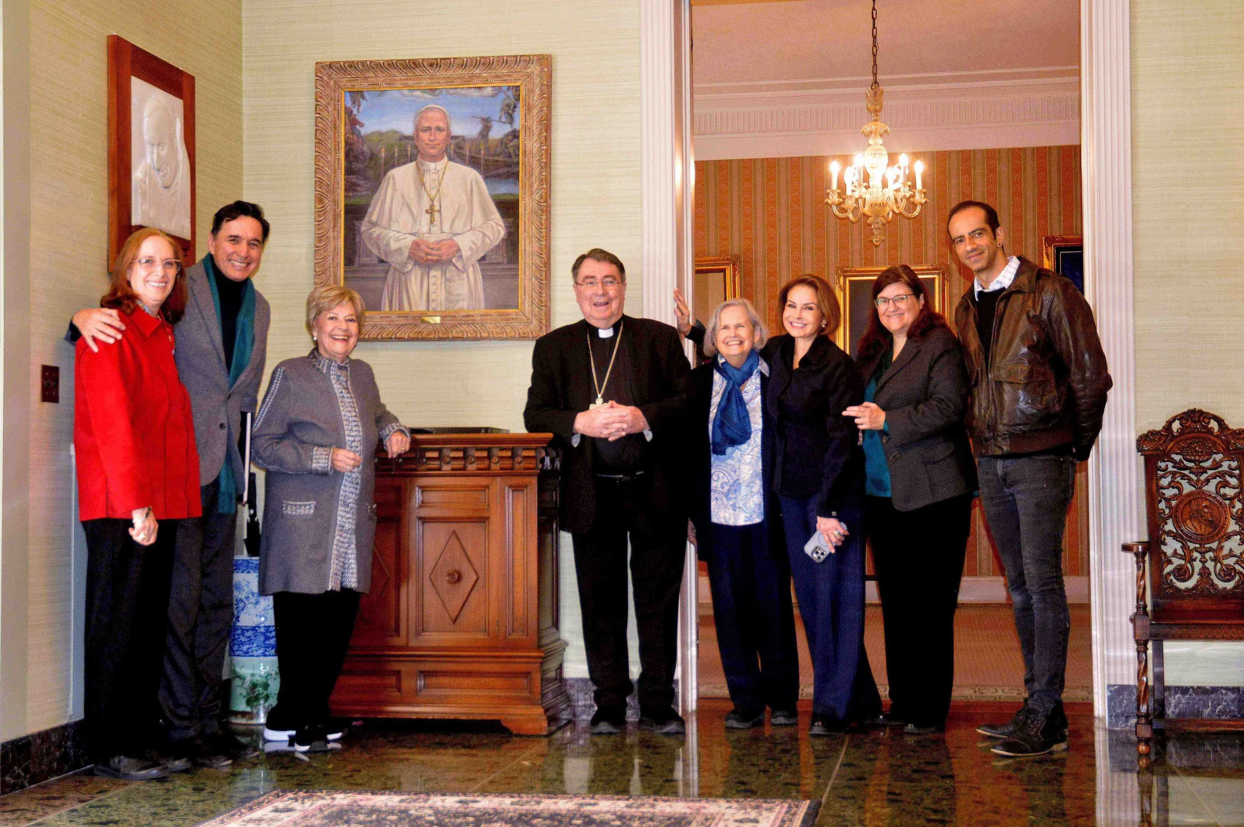 Unveiling of portrait commission of Pope Leo XIV for the Vatican Embassy in Washington D.C. Artist Juan Bastos, with guests, his cousin the Former First Lady of Bolivia, Ximena Sánchez de Lozada, and the Apostolic Nuncio Cardinal Christopher-Pierre in the USA. January 24th, 2026