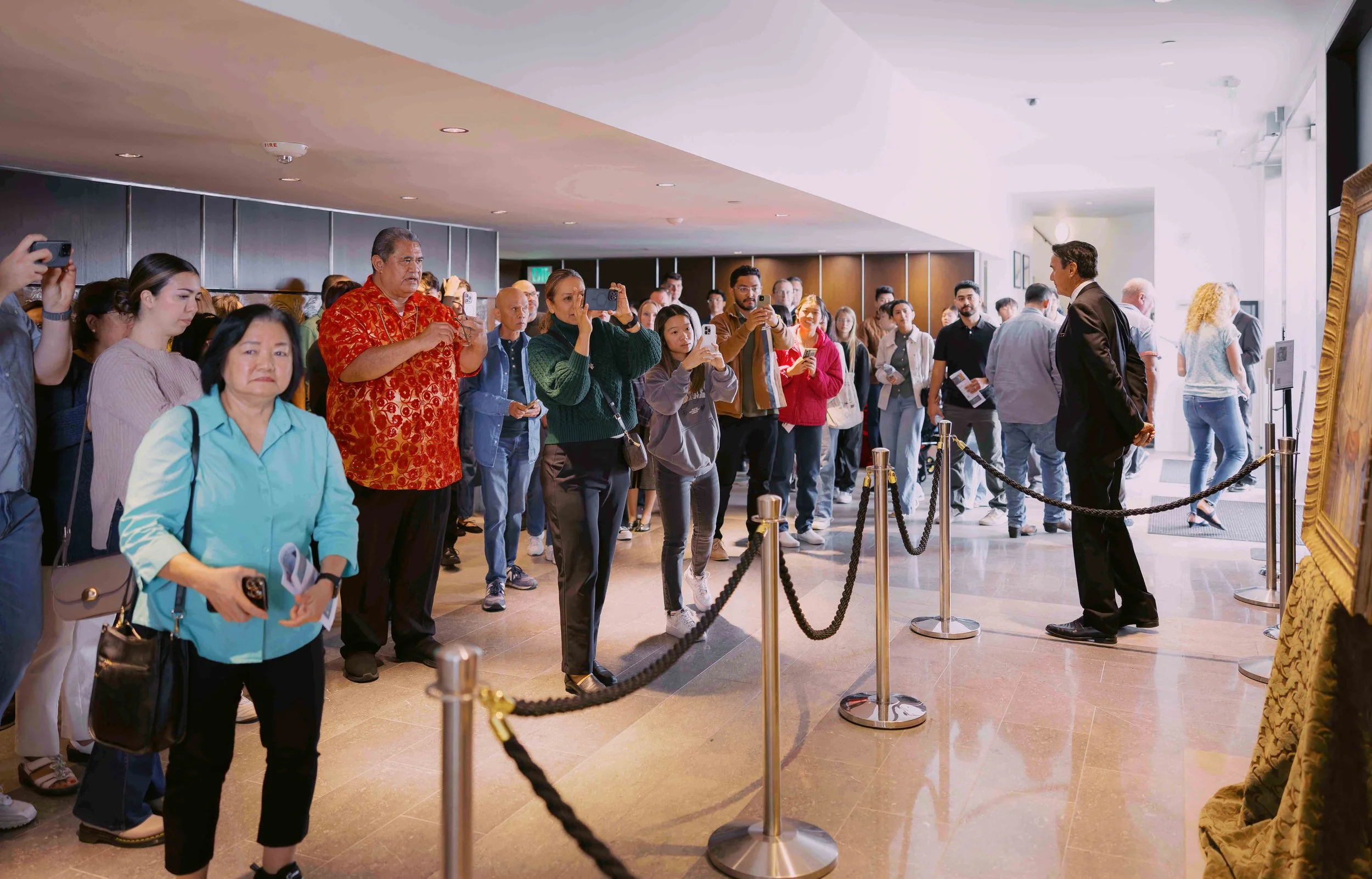 The portrait was first displayed at Christ Cathedral in Orange County on Sunday, October 26, 2025, seen by several thousand church-goers who attended eight masses. Later it was shown at a private reception at the residence of benefactress Fern Stanley-Evans, and finally unveiled on Saturday, January 24, 2026, during a private ceremony at the Apostolic Nunciature (Vatican Embassy) in Washington, D.C. The event was attended by distinguished guests, including the former First Lady of Bolivia, Ximena Sanchez de Lozada, cousin of the artist. His Eminence Cardinal Christophe Pierre, Apostolic Nuncio to the United States, unveiled the portrait with the artist. The work now holds a place of honor in the Nunciature’s collection, joining portraits of previous pontiffs and symbolizing the historic significance of Pope Leo XIV, who holds dual U.S. and Peruvian citizenship.
